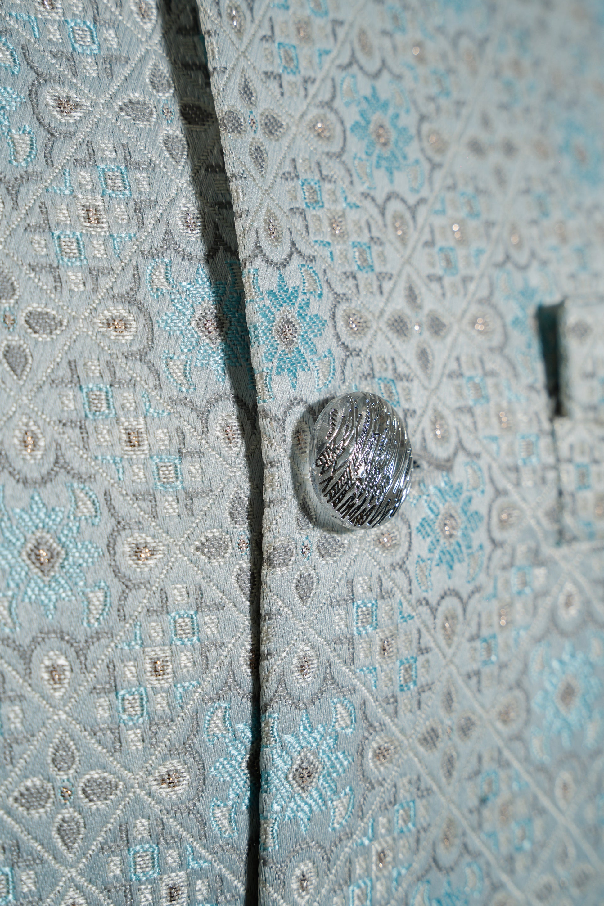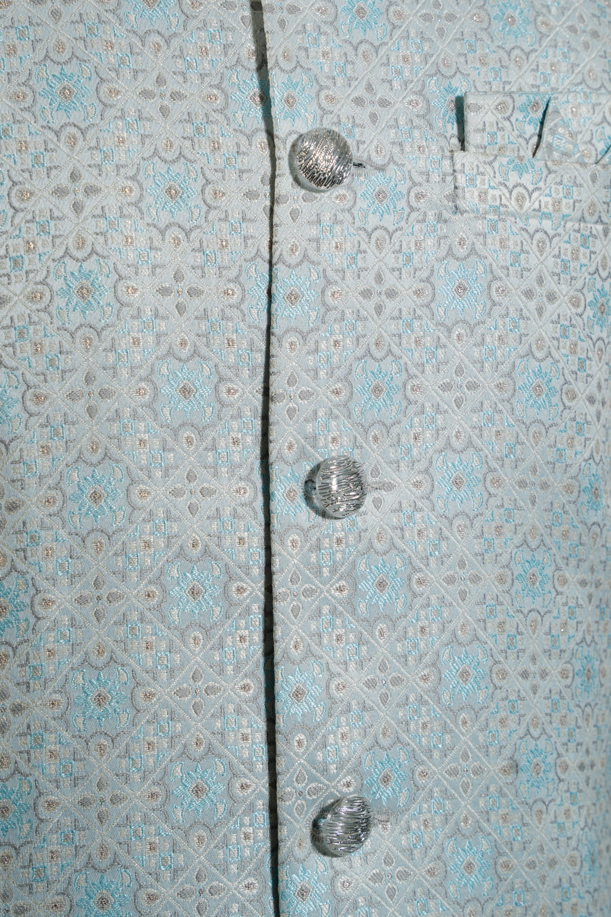 Blue Self-Pattern Print Nehru Jacket