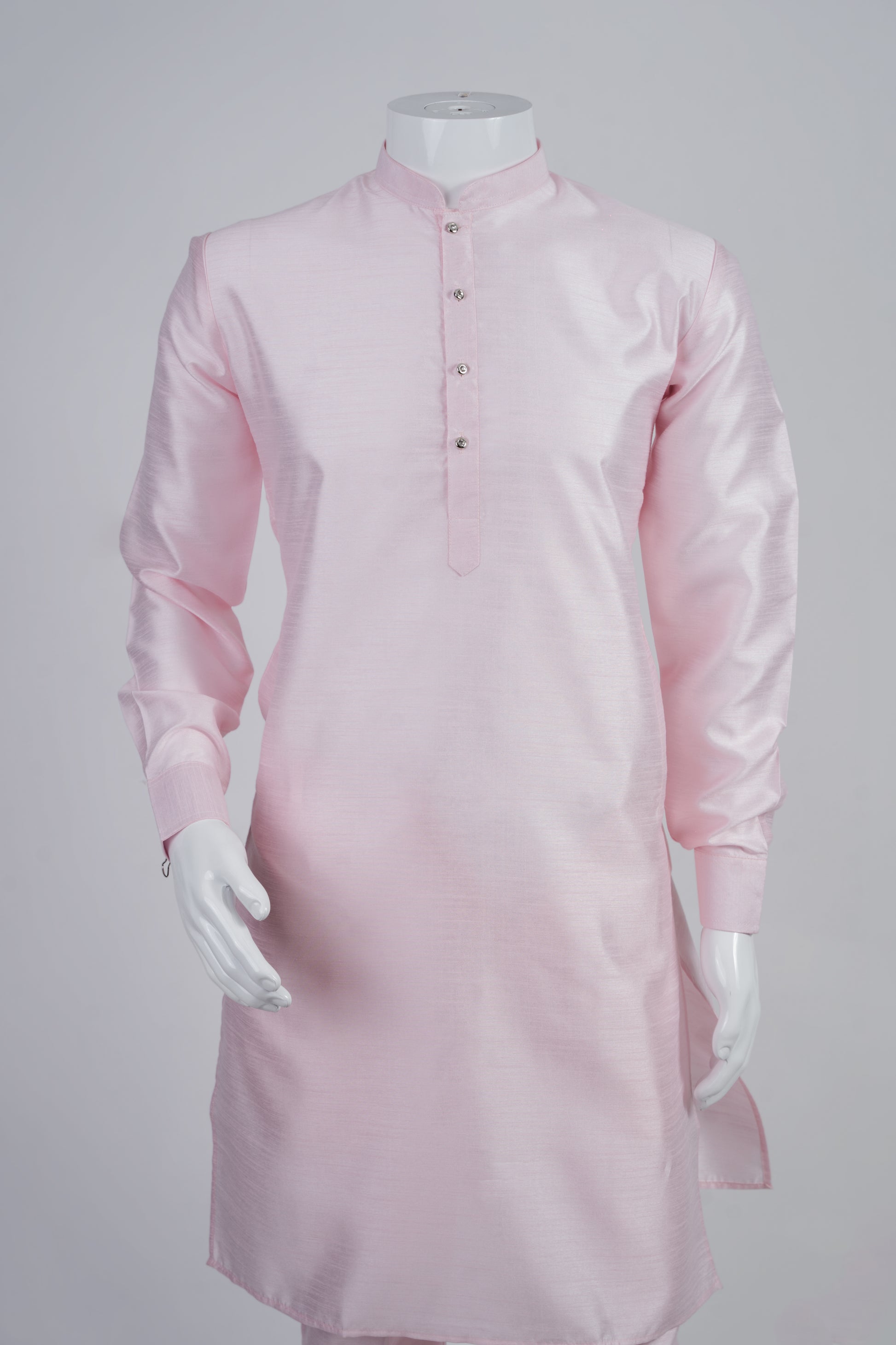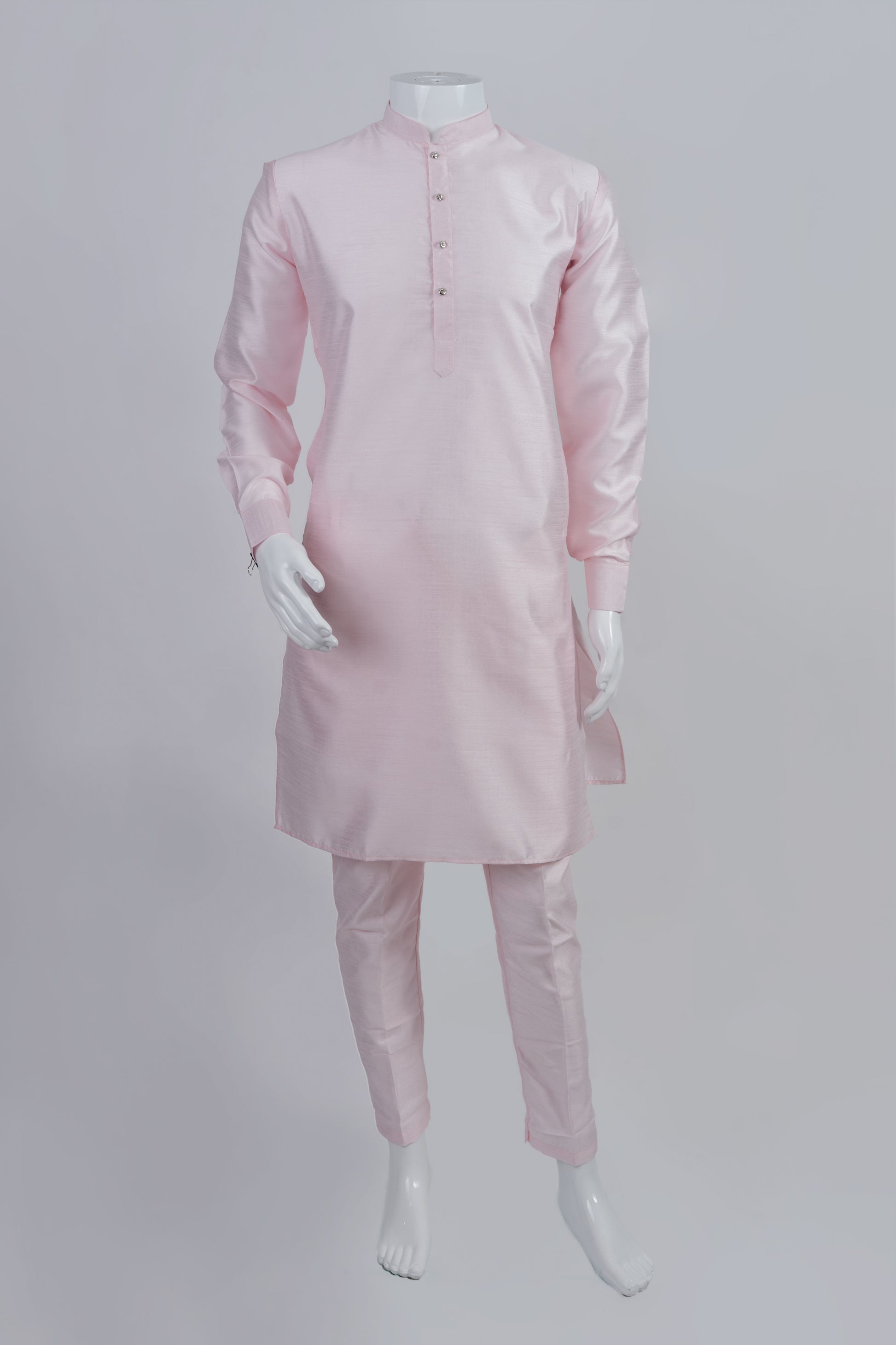 This Pink Kurta set is made of high-quality cotton fabric and features a classic plain design. It includes a kurta and pants (pyjama), making it a complete and stylish outfit. For wash care, it is recommended to dry clean only.